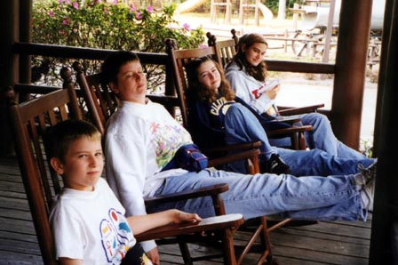 It's been a really fun week at Fort Wilderness. We decided to drop down to Crockett's Buffeteria for lunch one day (all you can eat soup, pizza, chicken, sandwiches, salad, cobbler, etc.) This is us relaxing after a very nice meal: