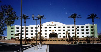 At any rate, we headed right on towards Utah, but as it started to get late and with the appeal of inexpensive hotel accomodation, we decided to stop in Mesquite, Nevada. This city is almost right on the border of Arizona (there is a little piece of Arizona before getting into Utah). We found a Holiday Inn that was only $29.95 per night (apparently the least expensive in the US) from Sunday to Thursday nights. It being Wednesday, we decided to get two rooms. In fact, once we saw the accommodations, I went back to the front desk and booked us in for a second night. With our registration we got a coupon book to the casino next door, which had the same ownership as the hotel. As I already knew, the place where they really make their money is in the casino, not in the hotel business. That explained the prices. Here are the establishments: