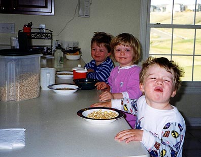 The next morning the kids awoke and had breakfast (which one is the ham?)