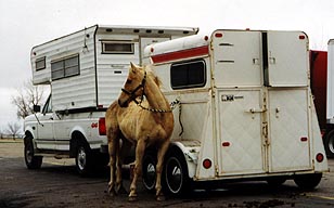Actually, this horse was not too happy to be tied up on such a cold and windy day, outside at a rest stop, so David did not get too close when taking the picture. It stayed fairly cold so we decided to stay at a hotel that evening.