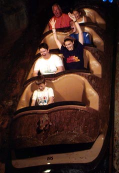 Another big attraction is Splash Mountain. Pam, Heather Lynn, and even James thought it was pretty cool (this ride particularly so since Pam got absolutely soaked .. just after this shot):