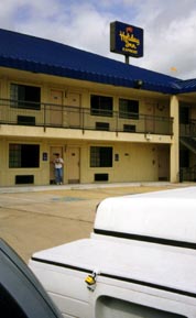Here is a picture of the hotel with our favourite mom coming out in the morning ready to head off driving for another day: