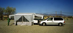 After lunch we headed west to Arizona. We wanted to stop at another state park on the way to Tucson and Phoenix, however, we did not find one that had room, so we decided to stop in the friendly little city of Willcox, Arizona. As it turned out, this used to be the location of the largest shipping area of cattle in the US. You wouldn't necessarily know that now, however, since it only has a population of about 3,500 people. We picked out an RV park that was not well advertised (a local we asked at the gas station wasn't even sure where it was when we got there), however, we found it without much trouble. The lot was pretty barren (of people and of trees, grass, etc.). It was just a large gravel 'parking lot'. We set up our site: