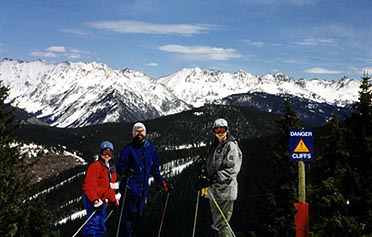 The next day (Monday), Kathie took James, Heather Lynn, and David skiiing at Vail. Kathie teaches there, as does her significant other, Rick. This was superb skiiing! It being our first time out this season, the first couple of runs were more a matter of getting used to the feeling, but it was grand. We did get our confidence up and decided to go for some of the more difficult sections of Vail: