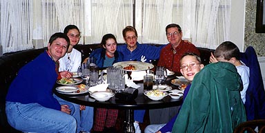 That evening we visited David's cousins (also living in Colorado Springs), Charlie and Betty Tewell. They took us all out to their favourite local restaurant, Fargo's. Here are a couple of pictures of our very enjoyable evening out: